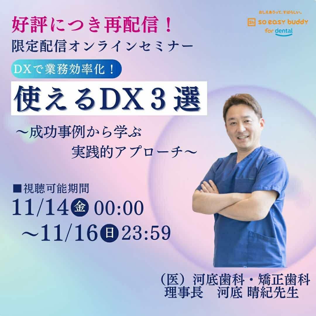 なお、河底歯科・矯正歯科で実施しているDX見学は3時間まで無料でご案内しております。